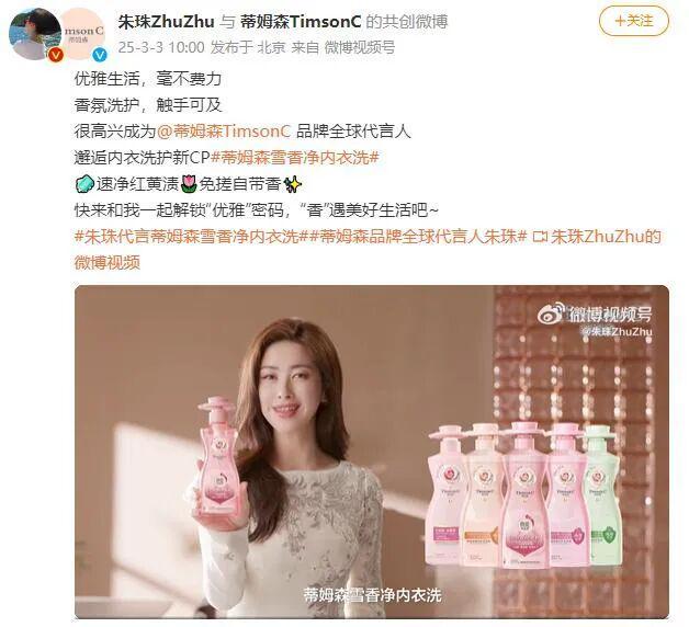 3月3日,高端香氛家清护理品牌蒂姆森携手品牌全球代言人朱珠,以「雪香净内衣洗系列」新品给出了破题思路——将产品研发的起点回归到女性最基础的生活场景,用科技赋能解决内衣清洁的隐性家务痛点,以香氛疗愈重构日常护理体验。
